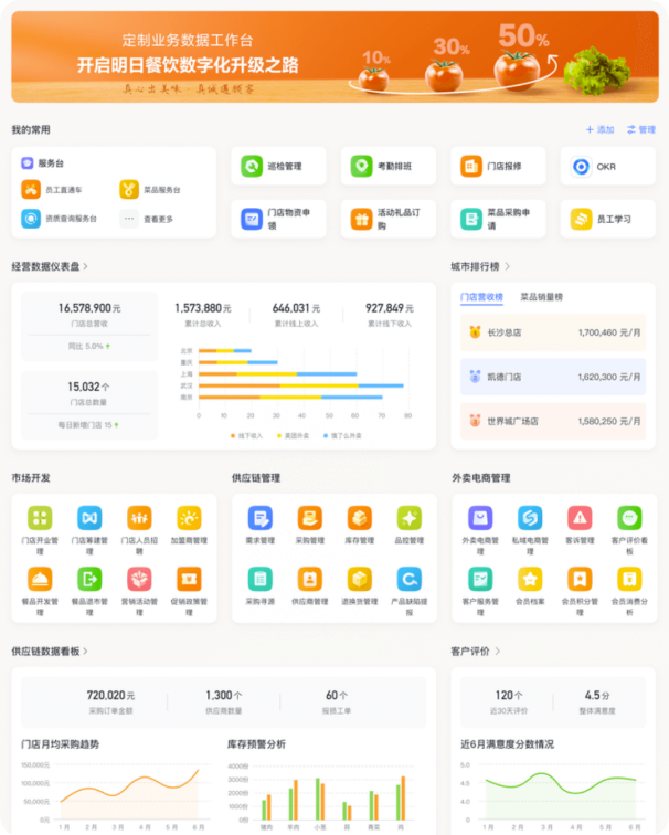 西貝自 2022 年選擇全員使用飛書(shū),實(shí)現(xiàn)總部和門(mén)店的高效協(xié)同,并通過(guò)飛書(shū) OKR 強(qiáng)化組織戰(zhàn)略落地,打造餐飲行業(yè)數(shù)字化最佳實(shí)踐。公司介紹西貝是中國(guó)餐飲百?gòu)?qiáng)企業(yè),旗下西貝莜面村是國(guó)內(nèi)中式正餐經(jīng)營(yíng)規(guī)模最大的品牌。西貝 1988 年創(chuàng)立于內(nèi)蒙古臨河,擁有西貝莜面村、賈國(guó)龍功夫菜、西貝海鮮、九十九頂氈房四大品牌。 2020 年 6 月,入選“ 2019 年中國(guó)餐飲企業(yè)百?gòu)?qiáng)”,2021 年 12 月,入選 2021 內(nèi)蒙古民營(yíng)企業(yè) 100 強(qiáng)名單。用飛書(shū)構(gòu)建一站式協(xié)作平臺(tái), 1 秒將重要信息傳達(dá)全國(guó) 370 家門(mén)店作為全國(guó)最大的中式正餐連鎖企業(yè),創(chuàng)立 34 年來(lái),西貝在全國(guó) 58 個(gè)城市開(kāi)設(shè)了 370 家直營(yíng)門(mén)店,員工 26000 人,每年服務(wù) 7000 萬(wàn)消費(fèi)者。業(yè)務(wù)的快速成長(zhǎng),讓組織也面臨更大的挑戰(zhàn)。如何做強(qiáng)總部的專(zhuān)業(yè)化分工、實(shí)現(xiàn)各專(zhuān)業(yè)職能部門(mén)的橫向打通,增進(jìn)部門(mén)之間的協(xié)同關(guān)系,加強(qiáng)總部到全國(guó)門(mén)店的順暢溝通,成為西貝在數(shù)字化經(jīng)營(yíng)過(guò)程中面臨的重要挑戰(zhàn)。完成向飛書(shū)的遷移后,西貝用飛書(shū)打通全員通訊錄,總部可即時(shí)聯(lián)系到任意門(mén)店的任意一個(gè)員工,員工間可設(shè)置精細(xì)的溝通權(quán)限管控,找人、溝通都更便捷。使用飛書(shū)會(huì)議異地溝通,支持千方同時(shí)參會(huì),一鍵發(fā)起企業(yè)內(nèi)直播,讓會(huì)議更高效。會(huì)后飛書(shū)妙記自動(dòng)生成錄像及逐字稿,1.8 萬(wàn)字會(huì)議紀(jì)要只需 5 分鐘,準(zhǔn)確率高達(dá) 98% 以上,讓會(huì)議結(jié)論有據(jù)可循。西貝還將公司內(nèi)的各類(lèi)文檔遷移到飛書(shū)文檔中,并使用知識(shí)庫(kù)實(shí)現(xiàn)重要信息的整合、沉淀。使用飛書(shū)前,資料沉淀在本地文件中,文件傳達(dá)到全國(guó)員工,需員工層層復(fù)制轉(zhuǎn)發(fā)、效率低。使用飛書(shū)后,可以用一個(gè)在線鏈接,和所有員工分享最新版本內(nèi)容,并支持隨時(shí)更新。文檔權(quán)限可嚴(yán)格管控,限制復(fù)制和下載權(quán)限,僅限內(nèi)部查閱,重要信息可 1 秒加急上萬(wàn)人,使命必達(dá)。用飛書(shū),僅需 1 小時(shí)搭建業(yè)務(wù)表格管理供應(yīng)商抽檢、開(kāi)票工單餐飲上下游環(huán)節(jié)眾多,有大量非標(biāo)準(zhǔn)化的業(yè)務(wù)場(chǎng)景。這些業(yè)務(wù)場(chǎng)景無(wú)法通過(guò)成熟第三方系統(tǒng)實(shí)現(xiàn)業(yè)務(wù)數(shù)字化,而團(tuán)隊(duì)靠填表、傳文件、人工匯總的方式運(yùn)轉(zhuǎn),又低效繁瑣。飛書(shū)多維表格可靈活搭建輕便的業(yè)務(wù)數(shù)字化工具,系統(tǒng)“想要就能有”,最快 1 小時(shí)即可上線。比如,西貝食品安全巡視組會(huì)定期進(jìn)行供應(yīng)商、門(mén)店的抽檢。使用飛書(shū)前,所有小組成員需在 Excel 上填寫(xiě)相關(guān)信息,信息層層上交、匯總,部門(mén)逐級(jí)催辦,數(shù)據(jù)統(tǒng)計(jì)報(bào)告制作繁瑣,每次抽查,往往需要 1 整個(gè)工作日專(zhuān)人進(jìn)行資料整理。使用飛書(shū)后,團(tuán)隊(duì)將抽檢工作通過(guò)飛書(shū)多維表格協(xié)作,使用表格分配任務(wù)、系統(tǒng)自動(dòng)提醒還未提交的成員,數(shù)據(jù)分頭錄入、自動(dòng)匯總,并能通過(guò)儀表盤(pán)實(shí)時(shí)展現(xiàn)數(shù)據(jù)洞察。類(lèi)似的,通過(guò)多維表格搭建開(kāi)票流程的協(xié)作工具,也讓西貝團(tuán)隊(duì)每年省下 65 人·天。西貝門(mén)店與客服中心的同事,經(jīng)常遇到客戶補(bǔ)開(kāi)發(fā)票的需求。客戶離店后需補(bǔ)開(kāi)發(fā)票,無(wú)法按常規(guī)開(kāi)票流程自助實(shí)現(xiàn),往往需要客服、財(cái)務(wù)、門(mén)店多方協(xié)協(xié)助完成。使用飛書(shū)前,客服或門(mén)店接到客戶特殊開(kāi)票需求后,需與客戶人工收集相關(guān)信息;部分開(kāi)票信息不規(guī)范、不全面,可能需要和顧客二次溝通,效率低下、影響顧客體驗(yàn);相關(guān)信息通過(guò)即時(shí)消息與財(cái)務(wù)溝通,無(wú)法清晰掌握開(kāi)票進(jìn)度,協(xié)作成本高;每次開(kāi)票信息都需要財(cái)務(wù)系統(tǒng)中人工確認(rèn)匹配,操作易出錯(cuò);使用飛書(shū)后,客戶點(diǎn)擊客服提供的鏈接、或在門(mén)店掃碼,填寫(xiě)飛書(shū)表單,可準(zhǔn)確提交開(kāi)票信息;系統(tǒng)自動(dòng)通知財(cái)務(wù)同事處理開(kāi)票;多維表格內(nèi)自動(dòng)根據(jù)客戶所在門(mén)店匹配對(duì)應(yīng)開(kāi)票信息,省去人工確認(rèn);客服完成開(kāi)票后,系統(tǒng)自動(dòng)提醒客服或門(mén)店辦結(jié)情況。從消費(fèi)者到門(mén)店員工,再到總部客服、財(cái)務(wù)團(tuán)隊(duì),使用多維表格無(wú)縫連通,信息效率大大提高。用飛書(shū)搭建學(xué)習(xí)群,自動(dòng)化沉淀組織洞察與思考西貝倡導(dǎo)建設(shè)學(xué)習(xí)型組織,在高管團(tuán)隊(duì)中建立“日清日高”學(xué)習(xí)群(今天完成的事情必須比昨天